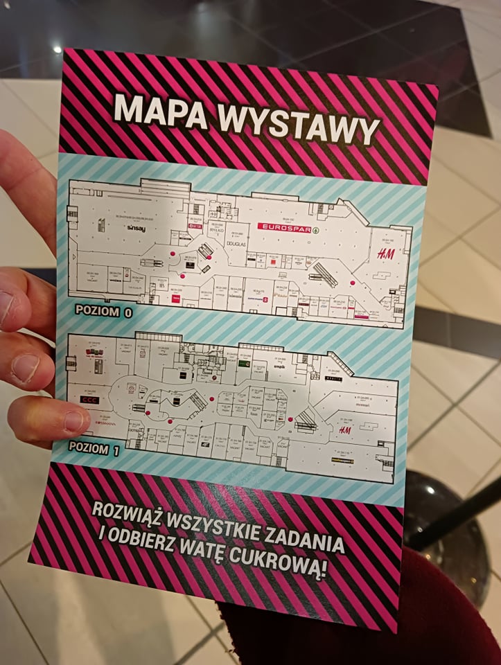 Wystawa jest od 14.02 i trwa do 26.02, codziennie od 11 do 19, można więc śmiało wypad do galerii połączyć z zakupami czy seansem w tutejszym kinie. Na starcie, już po wejściu od widać różowe kompozycje, jednak proponujemy wam zacząć zwiedzanie od środka – nie bez powodu oczywiście! W centrum galerii znajdziemy stoisko, na którym można pobrać karty z zadaniami. I od tego momentu zaczynają się prawdziwe podchody! 🙂